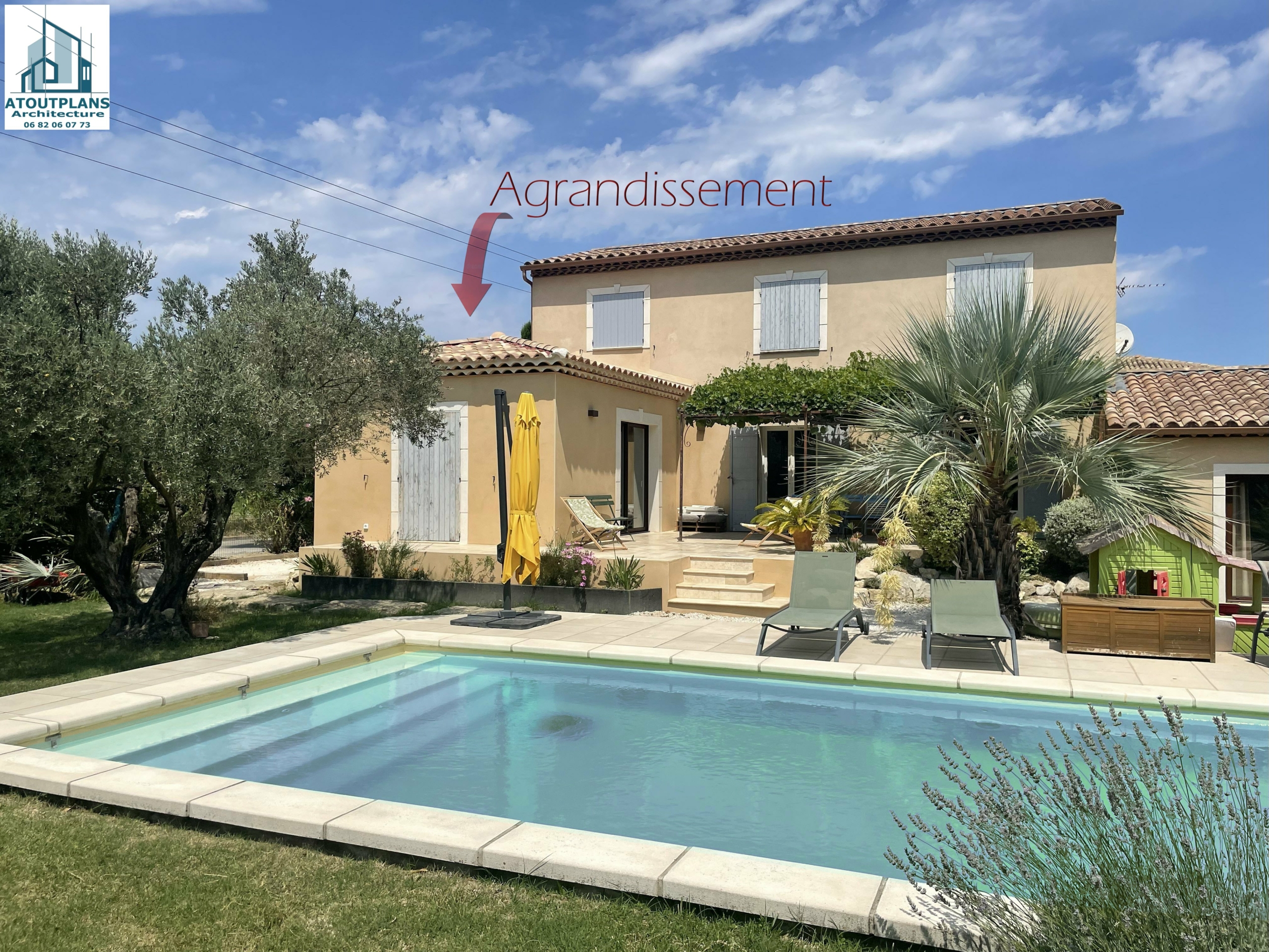 Ce projet d’agrandissement a été réalisé à Orange (84) sur une bastide de 177 m². L’objectif : gagner en confort de vie au quotidien et anticiper les besoins d’une famille qui s’agrandit, avec la naissance imminente d’un enfant.